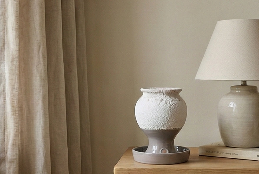 Remplissez le calice avec le sel fourni et maintenez-le légèrement humide en l'humidifiant régulièrement. Ce procédé active le processus de purification continue. Que ce soit pour prendre soin de votre peau en hiver ou comme filtre naturel pendant la saison des allergies, le calice de sel taupe est votre fidèle (et élégant) allié tout au long de l'année.